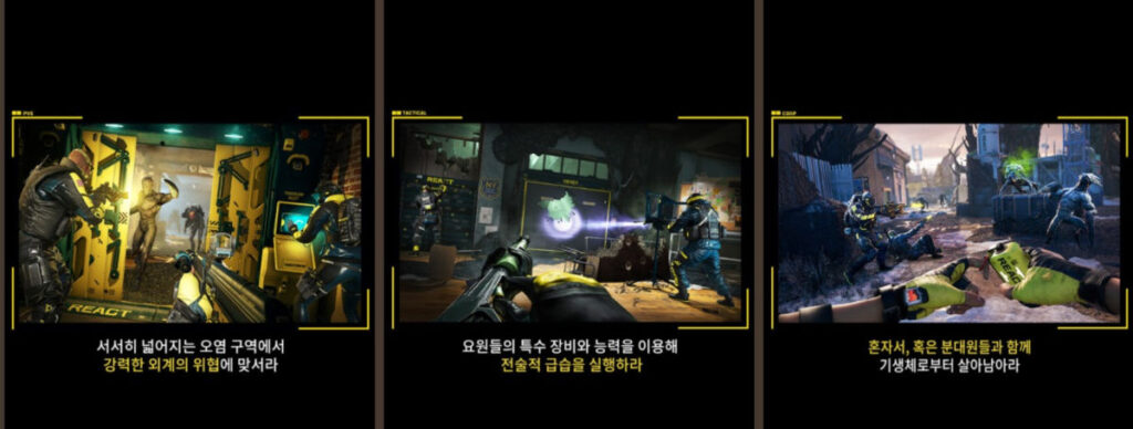 참고로 아직까지 익스트랙션 시리즈에 대해서 접해보지 못하신 분들은 위 세 사진으로 요약드릴 수 있을 것 같습니다. 기본적으로 팀을 이뤄 AI(기생체들)을 상대하는 진행 구성을 갖추고 있기 때문에 친구들과 플레이하기 아주 좋으니, 요즘 할 게임이 하나 둘씩 사라지고 있다면 이 게임. 조금만 더 존버하시기 바랍니다.
