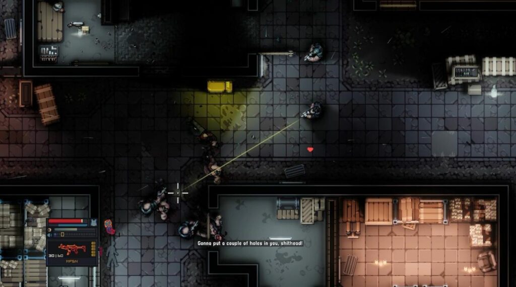 해당 게임은 사진에도 보이듯, 탑다운 방식의 게임이기 때문에 상당히 다양한 요소들이 녹아들어 있습니다. 운명 공동체나 다름 없는 콤비가 함께 곤경을 헤쳐나가는 이야기를 가지고 있는이 게임은 유저의 성향에 따라서 스텔스 방식도, 택티컬한 방식도 가능합니다.