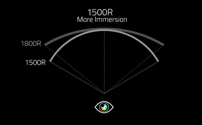 가령 1500R인 모니터는 1800R 모니터에 비해 더 구부러진 형태를 하고 있다.
