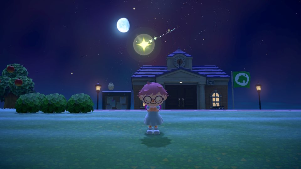 우선 모동숲 소원을 비는 방법은 매우 쉬운데요! R 버튼을 눌러 하늘을 바라보게 하고, 떨어지는 순간에 맞춰 A 버튼을 누르면 소원을 빌 수 있습니다.