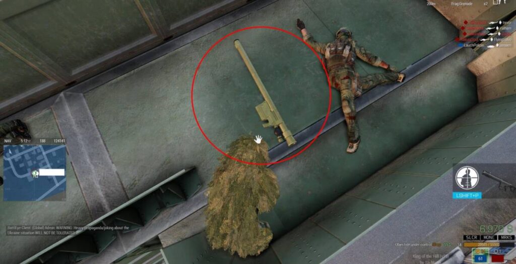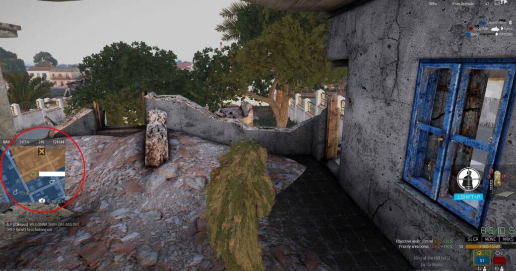 위에서 설명한 점령 지역 안에서도 추가 점수가 부여되는 곳이 있습니다. 우선 순위 점령 지역 혹은 프라이어리티 존, 핫 존, 오렌지 존 등 다양하게 불리는 곳으로 사진상에서 왼쪽 GPS 상에서 주황색 칠이 되어있는 곳입니다. 이곳에 있을 경우 우선 순위 점령 보너스로 100원이 추가적으로 주어집니다. 하지만 앞서 언급하였듯, 장비가 허가 되는 서버에서는 우선 순위 점령 지역에 무차별 난사가 이루어지는 경우가 많습니다.