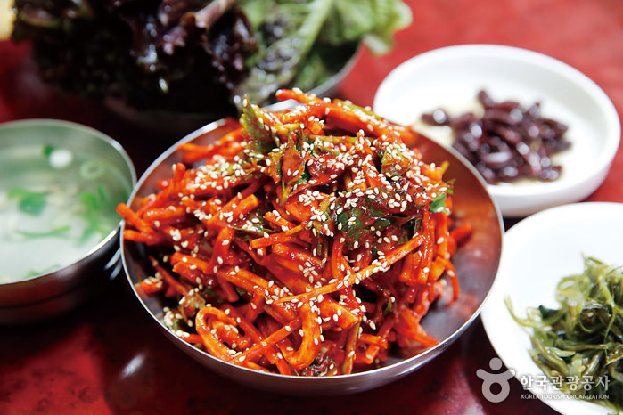 매콤하고 싱싱한 무침회의 매력에 빠지는 반고개무침회골목은 1960년대 초에 처음 시작되었습니다. 쫀득한 오징어와 소라에 아삭한 무, 향긋한 미나리를 무친 새콤달콤한 양념장의 맛이 일품입니다. 톡 쏘는 매운 맛과 새콤달콤한 맛의 조화는 중독성이 강하며 밑반찬으로 나오는 재첩국과의 궁합이 환상적입니다. 반고개무침회골목에는 15곳의 무침회 식당이 옛 맛을 잃지 않고 손님을 불러 모으고 있습니다. 점심메뉴로도 인기 있지만 저녁 술안주로도 큰 사랑을 받는 중.