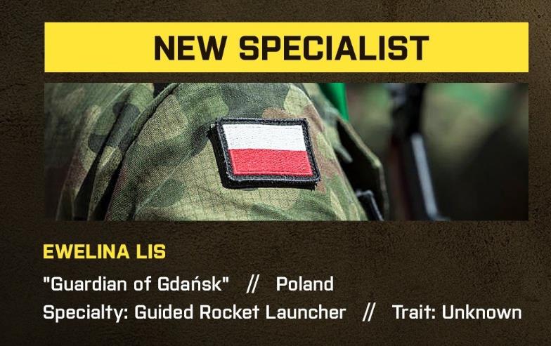 폴란드 출신의 스페셜리스트가 추가됩니다. Ewelina Lis 라는 이름을 갖고 있으며, Gdansk 의 수호자라는 별명을 갖고 있는 듯 합니다. 특별한 주요 무기는 가이드 로켓 런처라고 합니다. 유도 미사일이라고 생각하시면 되는데, 사용자가 조준하는 방향에 따라서 날아가는 방식입니다. 아마 락온 시스템도 적용될 것으로 예상됩니다. 특성은 자세하게 밝혀진 것은 없는 것을 보면, 컨셉 아트만 정해둔 채로 개발 중인 것으로 보입니다.