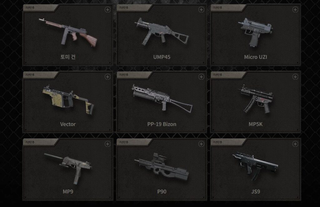 - 모든 SMG가 9mm 탄약을 사용합니다. (탄약 수급과 관리가 어려웠던 점을 개선한 것입니다.)