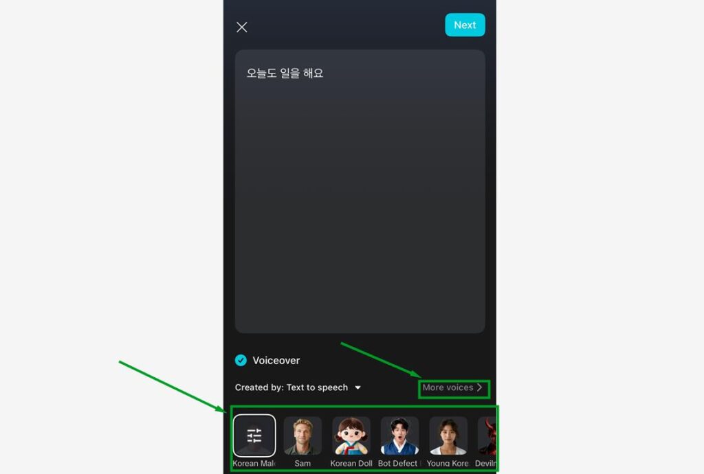 템플릿에서도 사용 가능하기도 하지만 지금은 캡컷 애덤 목소리 사용법(TTS)을 알려드리는 것이기 때문에 ‘예제’라고 생각해주시면 좋을 것 같습니다.