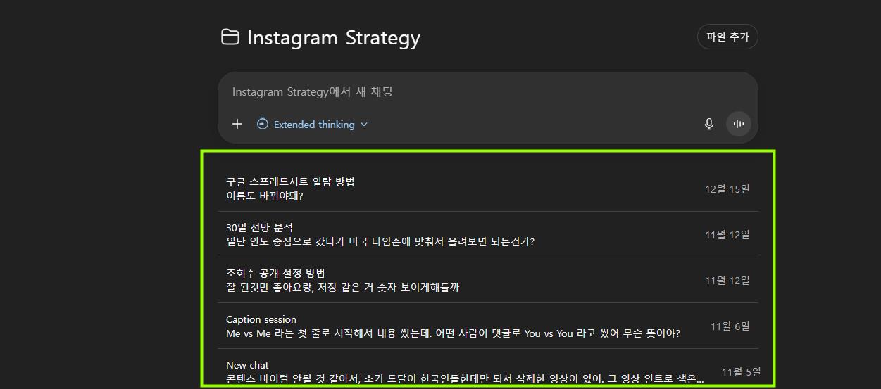 핵심은 ‘이전의 축적된 데이터’들이 맥락으로 작용한다는 것인데요. 이 때문에 1개의 대화에서 대화를 쭉 이어가는 것보다 훨씬 더 깊이 있는 인사이트를 제공받을 수 있습니다.