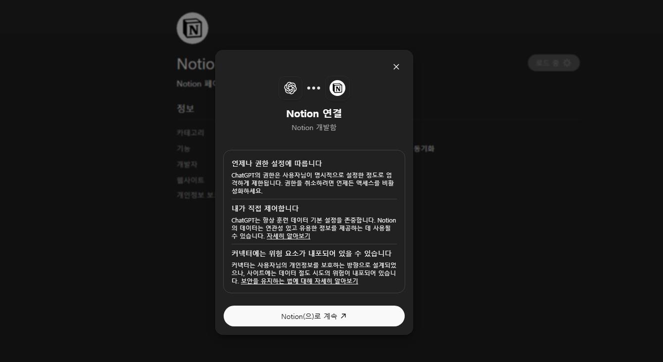사람들이 자주 사용하는 앱인 ‘노션’을 예로 들어 보겠습니다. 지피티에게 특정 페이지를 읽게하거나, 데이터베이스 내용을 요약 및 구조화 하는 등이 가능합니다.