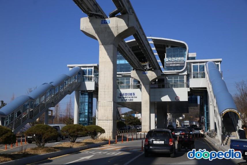 대구광역시 북구 동호동에 위치한 대구 모노레일 도시철도 3호선의 역. 대구 도시철도 3호선의 차량기지인 칠곡차량기지사업소에서 출발한 전동차가 첫번째로 도착하는 기점이 되는 역입니다. 2015년 4월 23일에 개업하였으며 역번호는 312번. 출입구는 4곳에 설치되어 있으며 1번과 2번 출입구에 에스컬레이터가 설치되어 있고 엘리베이터 2기가 있습니다. 부근에 경상북도 농업기술원과 경상북도 공무원교육원, 칠곡 경북대학교병원이 있으며 대구체육중고등학교가 자리합니다.