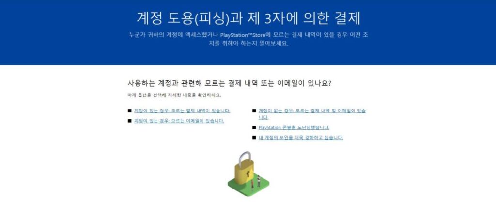 위 사진은 플레이 스테이션 스토어 고객센터에서 볼 수 있는 문구입니다. 계정 도용이나 피싱 혹은 해킹을 통해서 사용자가 모르는 사이에 고액을 인출해 가는 경우도 있고, 강제로 결제시켜 버리는 경우가 있죠. 그러한 일이 벌어진 데에는 여러 가지 이유가 있겠지만 근본적으로는 ‘보안 취약성’ 입니다.