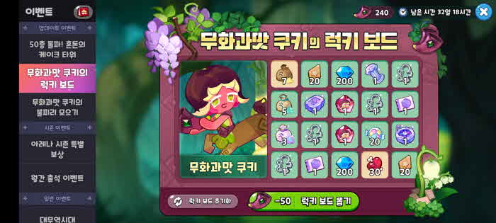 무화과맛 쿠키는 지원형/중앙형 쿠키로, 스킬인 젤리뿔피리 연주를 사용하면 일정 시간동안 적의 공격력을 감소시켜준다. 초콜릿칩 토핑으로 쿨타임을 감소시켜주는것이 일반적인 사용법…. 이나, 뿔피리 모으기 이벤트의 난이도가 너무 높다보니 아직 하나도 얻지 못한 사람들이 보인다..^^;; (에디터도 아직 못 뽑음) 불행 중 다행으로, 무화과맛 쿠키의 활용도가 낮아 널리 쓰이진 않는다.