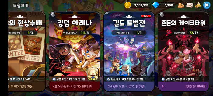 한층 한층 깨다보면 페스츄리맛 쿠키가 등장하는 특별 스토리를 감상할 수 있는것도 장점이다. 아몬드맛 쿠키나 딸기크레페맛 쿠키가 그랬듯, 혼돈의 케이크 타워 스토리에 함께 등장하는 벨벳케이크맛 쿠키도 조만간 뽑기에 등장할 것으로 보인다.