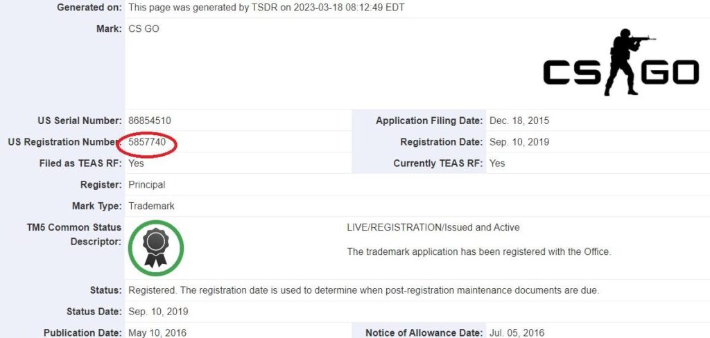 위 사진은 미국 특허청에서 찾아볼 수 있는 카운터 스트라이크 2 관련 상표 등록건입니다. 상품 출시를 하기 전 혹은 계획 단계에서 상표 등록을 하곤 하는데 아마 서비스 되기까지 그렇게 오래 걸리지 않을 것으로 추정해볼 수 있을 것 같습니다. 아무래도 “곧” 일 것 같다는 느낌이네요.
