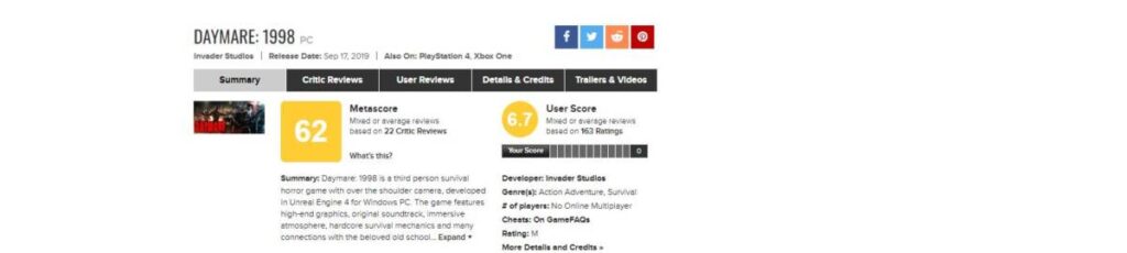 데이메어 1998 의 메타크리틱 점수 (출처 : 메타크리틱)