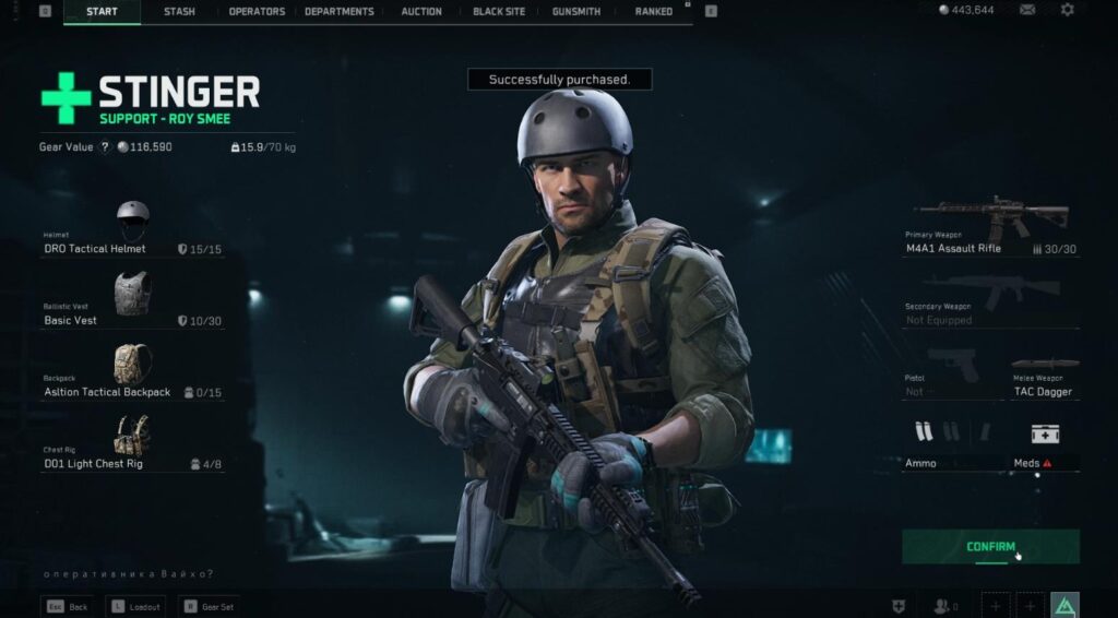 타르코프가 갖고 있는 단점이나 불편한 점은 빼버리고, 캐쥬얼하게 가는 모양새입니다. 그렇기 때문에 스태쉬 관리나 총기 관리, 장착 아이템 관리가 수월한 편입니다. 그리고 게임 시작 전 필수아이템이 없는 경우에는 경고창을 띄워서 친절하게 알려주기도 하죠.