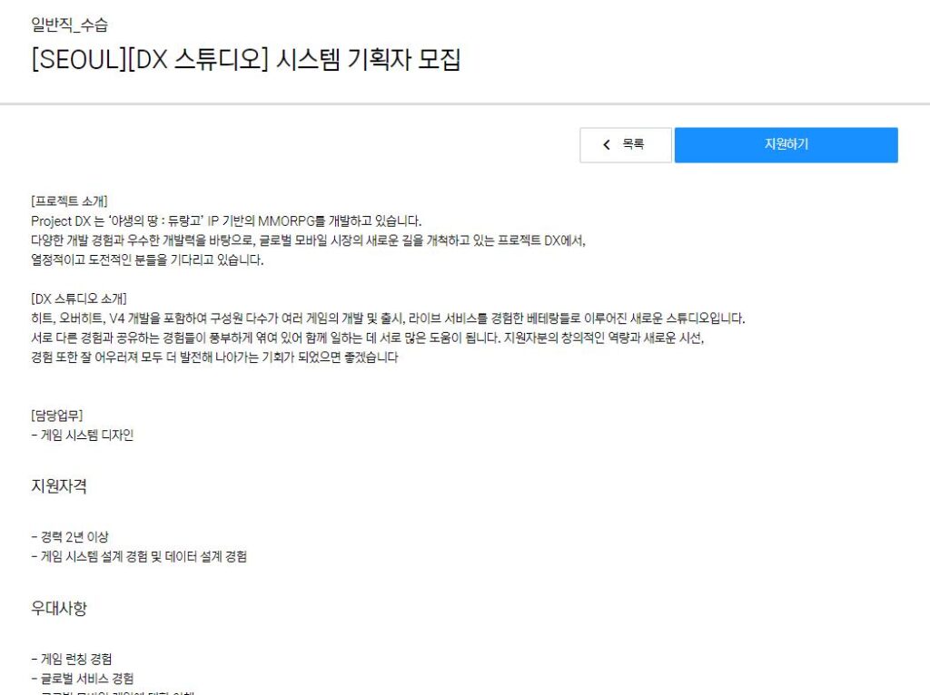 듀랑고 컴백과 상관 있을까? 넥슨 채용공고