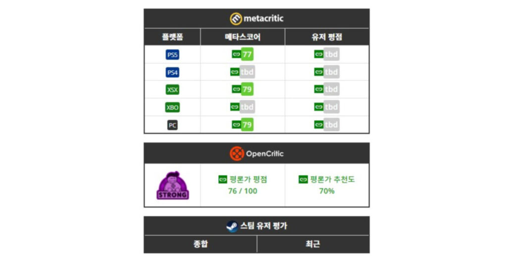 이를 증명하여 계승이라도 하듯, 다잉라이트 2 또한 준수한 메타크리틱 점수와 오픈크리틱 점수를 보이고 있는데요. 그러나 전자의 것들은 유저들의 평점이 아직 반영되지 않았습니다. 마찬가지로 스팀 유저들의 평가 같은 경우도 아직 완전히 집계되지 않은 상태이므로 언급하지는 않았습니다만, 이 또한 준수하다고 보는 입장이 우세하다고 보시면 되겠습니다.