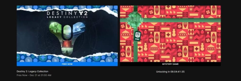 본격적인 에픽게임즈의 무료배포 공세에 들어가기 이전, 현재 데스티니 2를 무료로 받으실 수가 있습니다. 12월 21일까지 받을 수 있기에 굉장히 넉넉한 시간이라고 할 수 있겠습니다. 더불어 무료배포까지 남은 시간과 어떠한 게임일지에 대한 정보가 담긴 선물 상자를 보실 수가 있는데요. 이 포장은 언뜻 보기에는 일반적인 선물 상자 같지만 실제로는 그렇지 않습니다. 패턴 여기저기에 여러 가지 단서가 숨어있어서 어떤 게임이 다음 주인공인지 유추해볼 수가 있죠.