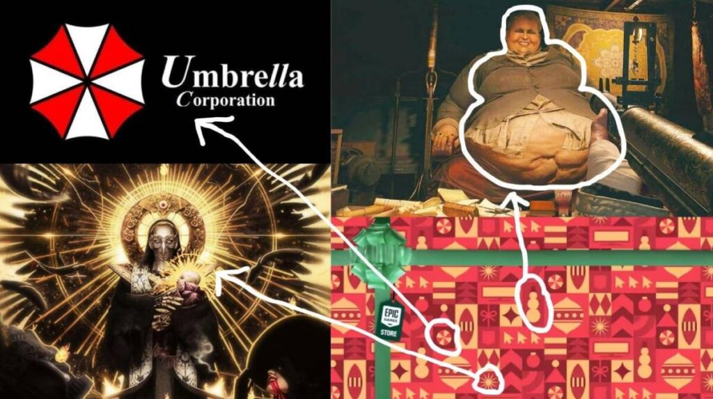 그 와중에 어떤 유저는 다음 무료배포 대상에 ‘바이오하자드’ 시리즈가 있을 것이라는 추측을 내놓았는데요. 그에 따르면, 게임에 등장하는 회사와 두 인물의 모습이 선물 상자 포장지에 형상화 되었다고 합니다.