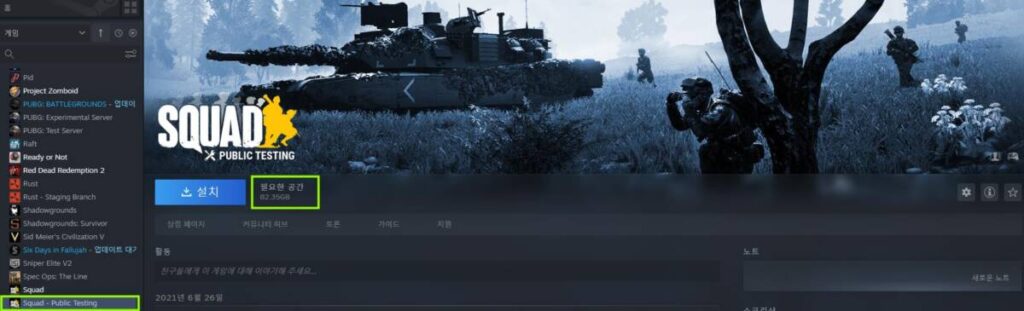 테스트는 라이브러리에서 Public Testing이라고 쓰여 있는 것을 설치하시면 되는데요. 이전에 스쿼드를 설치하셨다고 해도 80기가가 넘는 용량의 게임을 다시 설치해야 하기 때문에 이 점도 분명히 알아두셔야 할 것 같습니다. 아무래도 테스트 빌드와 정식 빌드는 서로 다른 점이 많기 때문에 이같은 용량이 나타나는 것인데요. 더군다나 정식 빌드에는 없는 팩션이 있기에 정식 스쿼드와 차이가 많다고 보실 수 있겠습니다.