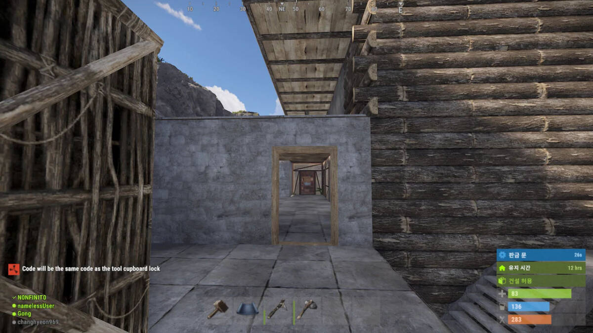 여백의 미라고 표현을 해야 할까요? 문의 중요성을 알게 되셨다면 그 다음 하셔야 할 일은 공방을 만들어두는 것입니다. 적이 레이드를 할 것을 가정하는 것입니다. 적의 시선에서 어느 공간이 레이드 하기 수월할 것 같은지 스스로 판단하신 뒤에 문만 여러 개 만든 공간을 만들어두세요.