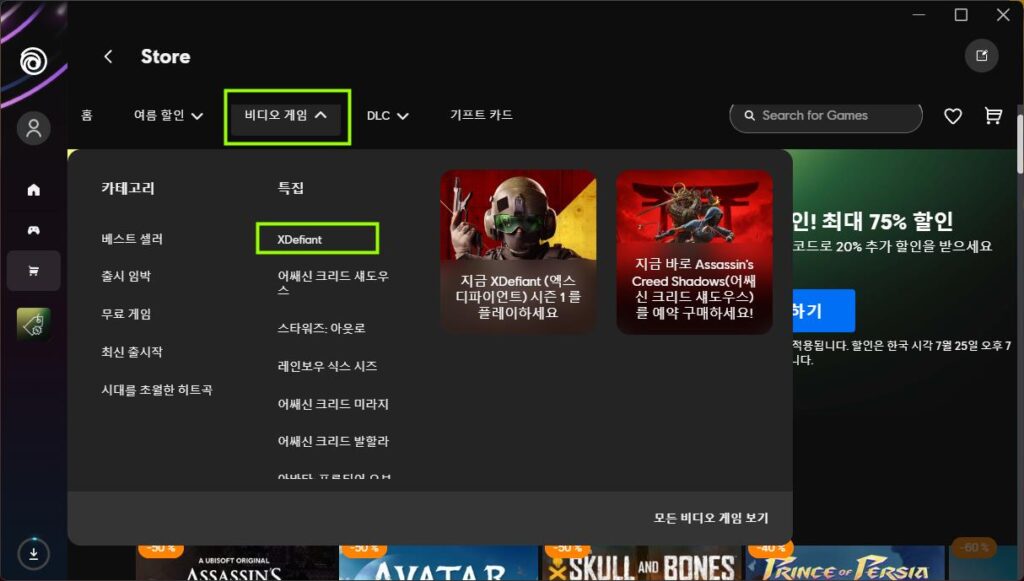 게임을 하려면 반드시 ‘유비커넥트’를 설치하셔서 로그인하셔야 해요. 아이디가 없으시다면 만드셔야 하고 말이죠. 이후, 위 사진처럼 비디오 게임 탭을 클릭한 뒤에 엑스디파이언트를 클릭하셔서 설치하시면 됩니다. 참 쉽죠?
