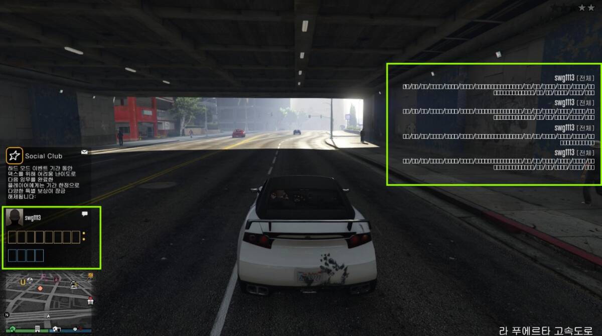 사진 속 한 유저가 지속적으로 전체 채팅을 통하여 특정 문장을 도배하는 것을 보실 수 있으실 것입니다. 이것은 매크로 프로그램을 통하여 지속적인 문구를 타이핑하도록 설정해두었기 때문인데요. 더욱 심각한 문제는 세션에 접속되어 있는 모든 유저들에게 문자까지 자동 전송 설정해두었다는 사실입니다.
