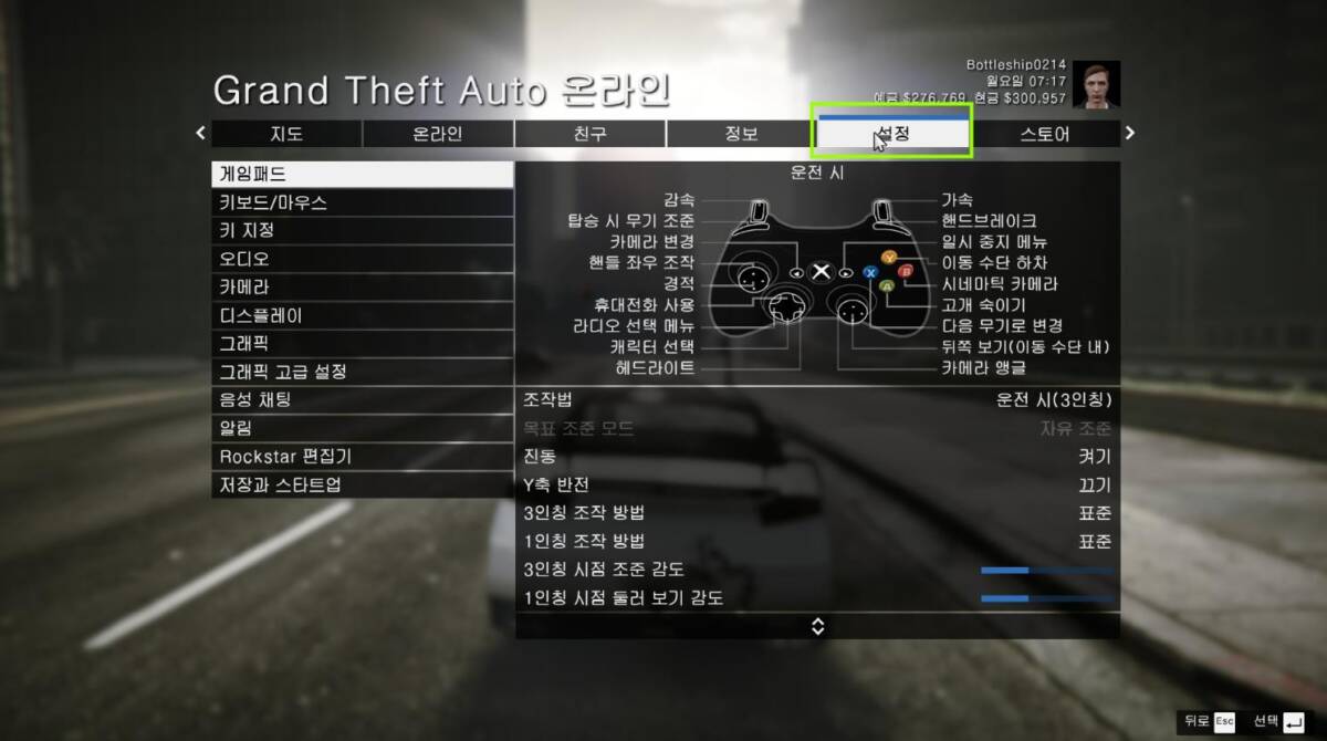 1. ESC를 눌러 설정으로 향합니다.