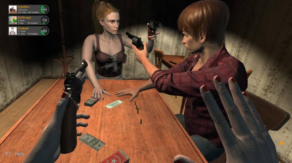스팀 상점에서는 위 사진을 내걸고 게임을 판매하고 있습니다. 왠지 러시안 룰렛을 하고 있는 것 같기도 하고, 빠르게 쏘는 사람이 승리자일 것 같기도 하죠. 실제로 빠르게 장전하여 쏘는 것이 놀이인 모드인데 이 게임에는 여러 가지 모드가 있습니다.