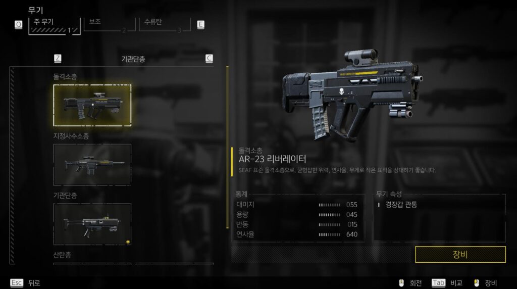 이곳에서 본인이 해금한 무기를 장착할 수가 있고, 성능을 비교해볼 수도 있습니다. 그런데 여러분들이 궁금해 하실 사항은 ‘어떻게 새로운 무기를 얻는가’ 일 것이라는 생각이 드는데요.