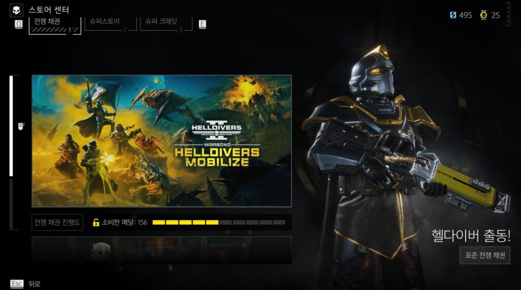 헬다이버즈2는 다른 게임들과 비슷하면서도 다른 구석이 곳곳에 존재합니다. 예를 들면 새로운 무기를 얻는 것도 마찬가지입니다. 보통은 특정 레벨이 되거나 조건이 성립될 경우에 해금되는 경우가 많은데, 헬다이버즈2는 ‘전쟁 채권’이라는 시스템을 이용해야 합니다.