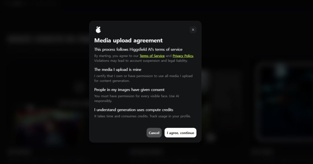 힉스필드는 한 엔진만 쓰는 게 아니라, 여러 모델을 고르는 허브처럼 쓰이곤 합니다. 때문에 목록에 Minimax / Kling / OpenAI Sora / Google Veo / Higgsfield / Wan / Seedance가 뜨죠.