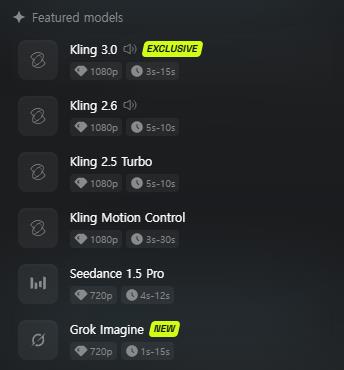예를들어 Kling 3.0은 1080p에 3~15s 같은 식으로, ‘가능 범위’가 모델마다 달라요.