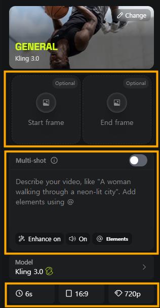 Start frame / End frame은 ‘시작/끝 이미지를 지정해서’ 영상 흐름을 잡는 기능입니다.