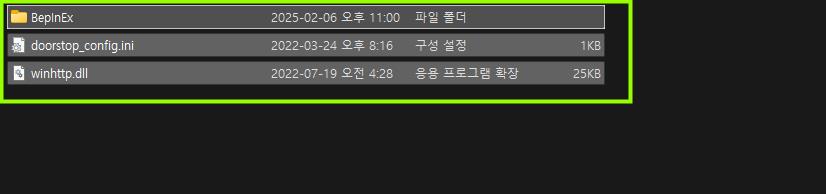 한글패치 또한 선행 모드가 존재합니다. 바로 위 사진의 BeplnEx-BeplnExPack 입니다. 간단히 설명하자면, 모드를 가능하게 해주는 기본 토대 정도로 이해하시면 될 것 같습니다. 해당 모드도 설치해야 한글 패치가 정상적으로 작동하니 꼭 설치하시기 바랍니다.