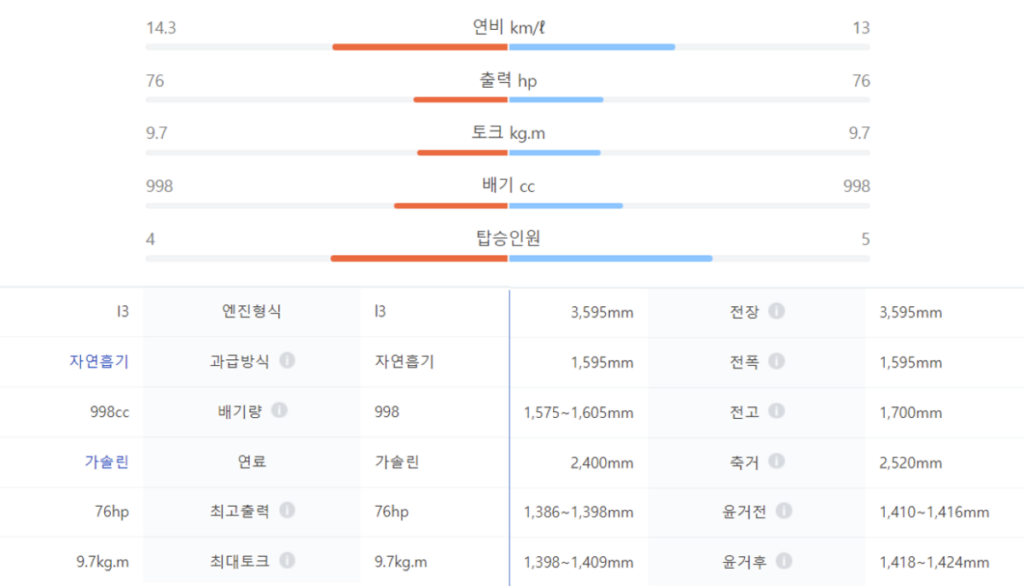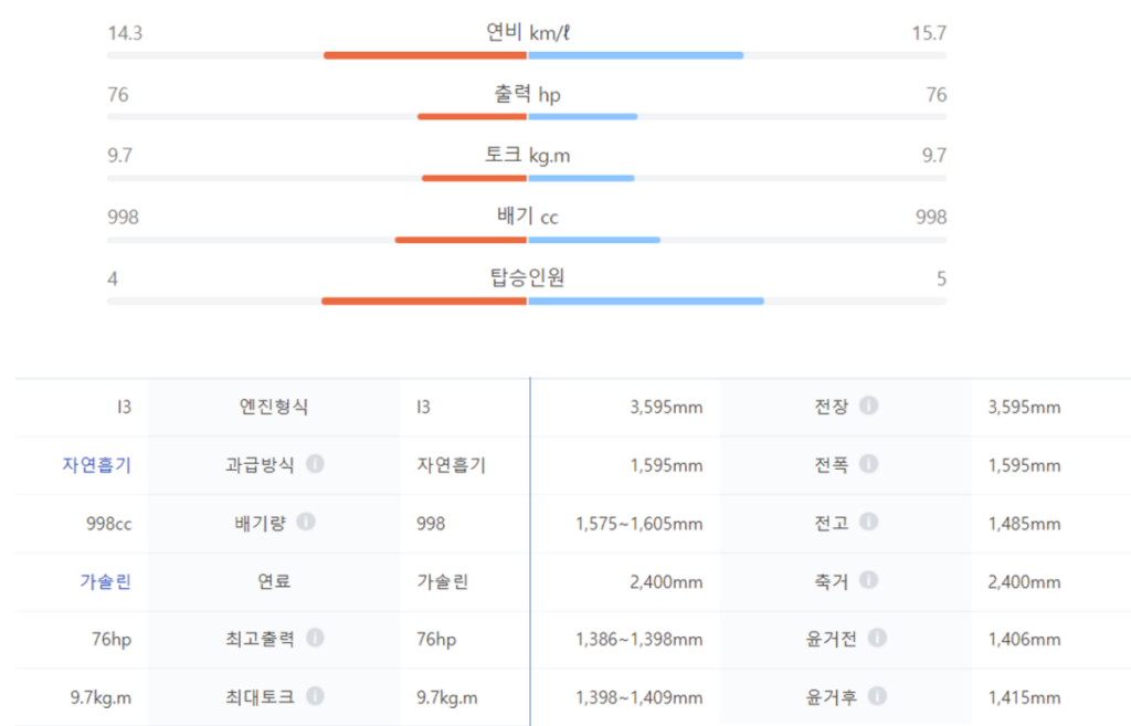 출처: 네이버 차량정보 (왼쪽: 캐스퍼 / 오른쪽: 레이)