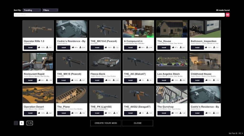 앞서 언급드린 사항들만 보더라도 플레이어가 입맛에 맞추어 즐길 거리가 많지만 노 플랜 비는 모드도 다양하게 준비되어 있습니다. 유저들이 함께 만들어나가는 게임이라는 이야기인데요. 흥하는 게임은 항상 모드가 뒷받침되고 있다는 점을 헤아려보면, 노플랜비는 정말 괜찮은 게임이라고 어필 하는 듯 싶습니다.
