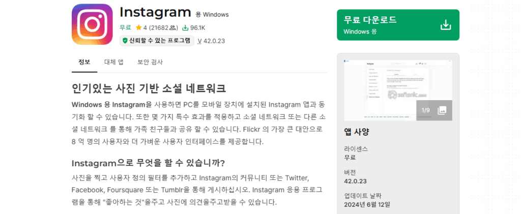 하지만, 확장 프로그램을 이용하는 방식에 비해서 매우 건강한 방법이기 때문에 제일 추천드리는 방법입니다. 개인정보를 보호하면서도, 컴퓨터를 켜자마자 인스타그램을 보고 싶으시다면 해당 앱을 다운로드 받으시는 걸 추천드립니다.