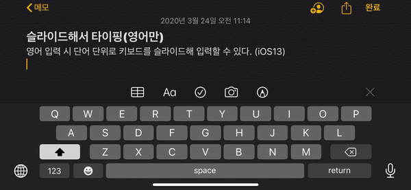 영어 타이핑을 할 때, 단어 단위로 슬라이드해 타이핑할 수 있다! 아직 사용법이 낯설지만 영어 타이핑을 자주 한다면 재미 삼아 한 번쯤 사용해볼 만한 기능.