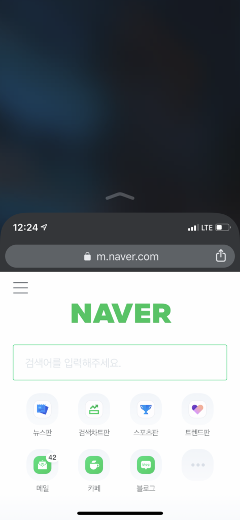 하단 중앙 바를 아래로 쓸어내리면 한손 모드로 사용 가능.