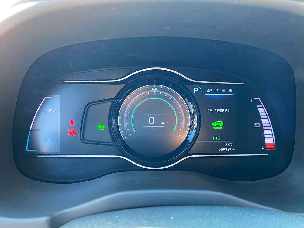 전기차를 타본건 처음이었는데 어찌나 조용하던지, 시동을 걸었음에도 불구하고 걸렸는지 안 걸렸는지 몰라 당황했을 정도. 기존 코나를 타고 있어서 차 자체에 어색한 점은 없었는데, 전기차인지라 버튼식 기어가 조금은 어색했다. (그래도 몇 시간 지나니까 금방 익숙해지더라!)