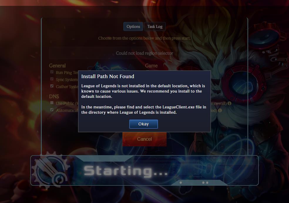 클라이언트 파일을 찾지 못해서 발생하는 오류이기 때문에 ‘LeagueClient.exe’라는 파일을 찾아서 경로 설정 해주시면 됩니다. 경로 같은 경우에는 개인의 설정에 따라서 상이 하지만 대체로 ‘Riot Games\League of Legends’ 이 경로는 동일하게 적용되곤 합니다.