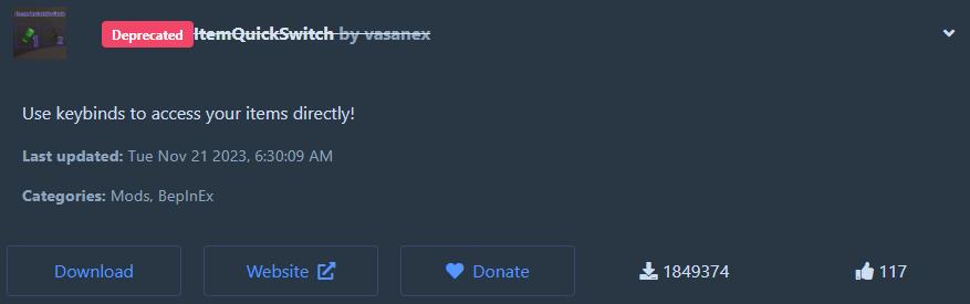 ⚠️ 주의점 : 해당 모드는 업데이트가 더 이상 지원되지 않습니다. 따라서 'Deprecated'라는 문구가 보이는 것일 뿐, 모드에 결함은 없습니다. 추가적으로, 모드 검색이 안되시는 분들은 아래에 나오는 방법을 참고하시면 정상적으로 모드를 찾아보실 수가 있습니다.