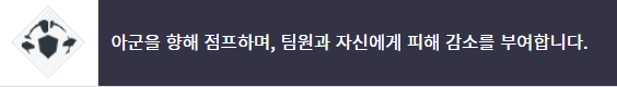 • 아군이 위험할 때 도약하여 보호막 제공