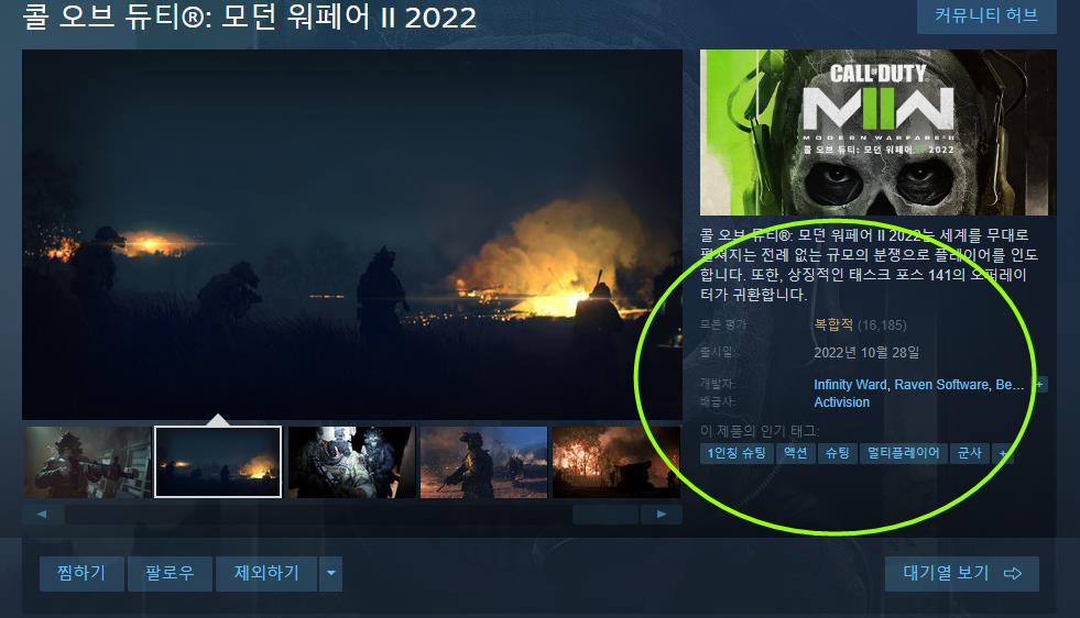 스팀 평가로 보는 콜 오브 듀티 모던 워페어 2