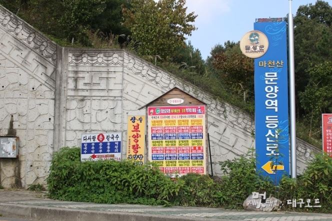 높이 274m의 마천산은 대구광역시 서쪽, 다사읍 세천리를 휘감고 흐르는 금호강 변에 위치합니다. <신증동국여지승람>에는 금성산()이라는 기록이 있고 봉수대가 있다고 기록되어 있지만 현재 봉수대의 흔적은 남아있지 않습니다. 북쪽으로는 성산과 이어지며 정상부 서쪽 사면에 마천산산림욕장이 자리합니다. 문양역에서 출발하는 등산로가 있으며 마천산을 한바퀴 돌아오는 코스로 길이는 약 7.7km, 약 2.5~3시간 정도가 소요됩니다.