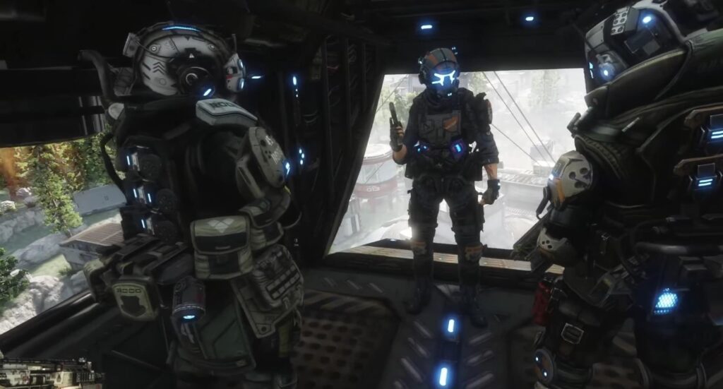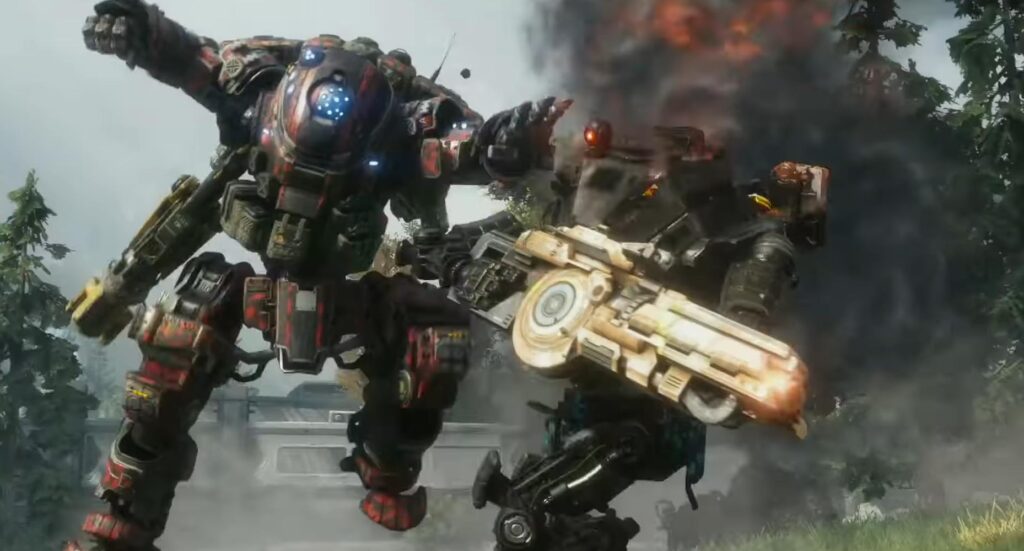 타이탄폴 2 라고? 처음 들어보신 분들도 계실 것 같은데요. 사진으로 보시는 것과 같이 타이탄이라고 불리는 메카닉을 탑승하여 상대방과 겨루는 게임입니다. 여기서 잠깐! 메카닉에 관심이 없다고 해서 이 장면을 보고 “나는 메카닉 별로..”라고 이야기 하실 필요는 없습니다. 다음 장면을 봐주세요!