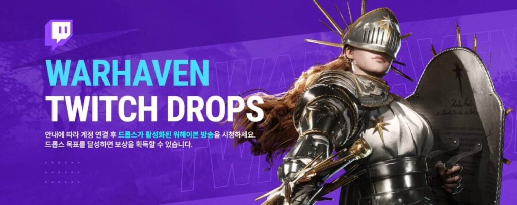 워헤이븐을 피시방에서 플레이 하면서 챙길 수 있는 것은 현물 경품 뿐만이 아닙니다. 바로 트위치를 통해서 드롭스를 얻을 수 있기 때문이죠. 드롭스는 자주 설명하는 부분이지만 한 번 더 짚고 넘어가자면, 워헤이븐 게임을 방송하는 스트리머의 방송을 일정 시간 시청한 뒤 경품을 받아가는 시스템인데요. 워헤이븐도 본 시스템을 활성화 해두었기 때문에 유저들이 원한다면 언제든 시청하여 아이템을 타갈 수 있습니다.