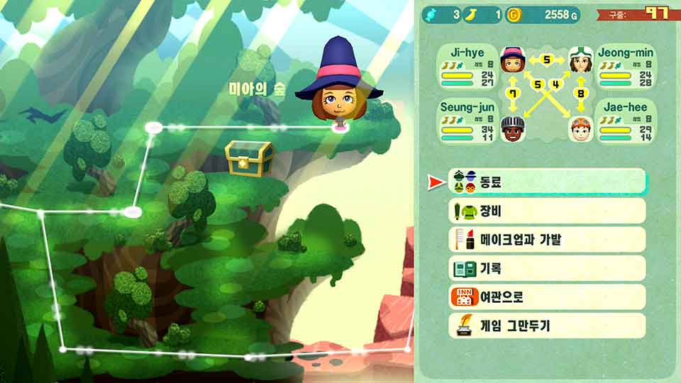 함께 다니는 Mii들이 서로 친해지면 시너지 효과가 발생해 전투를 유리하게 이끌 수 있다. 반대로, Mii들의 사이가 나쁘면 방해를 하기도 한다. 스토리를 진행하다보면 ‘말’도 만날 수 있는데, 말과 친밀도를 높여두면 역시 전투에 큰 도움을 준다. 게임 진행 방식이 매우 직관적이라 게임 초보들도 쉽게 적응할 수 있으며, Mii들의 엉뚱한 대화를 지켜보는 것 만으로도 충분한 재미를 느낄 수 있다.