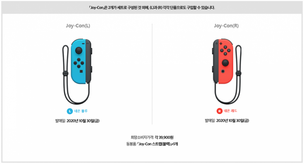 한국 닌텐도 공식 홈페이지는 오는 30일부터 조이콘 단품을 기존 4만 9,800원에서 약 1만원 내린 3만 9,900원으로 인하한다고 밝혔다. 특히 일본은 11월 6일부터, 미국은 11월 9일부터 인하된 가격으로 조이콘을 판매키로 했으나 한국은 이보다 할인 가격 적용 시점이 빠르다.