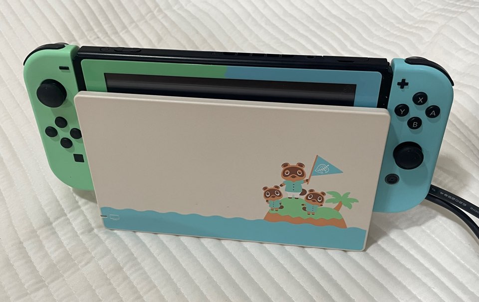 2021년에 출시된 닌텐도 스위치 OLED 모델은 각도 조절 가능한 테이블탑용 스탠드가 탑재되어 있으며, 독 역시 유선 LAN 포트 내장으로 TV모드에서 안정적인 온라인 플레이 가능합니다. 핸드헬드 및 테이블탑 모드에서 향상된 오디오 출력이 눈에 띄는 모델입니다.
